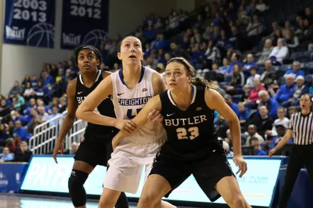 Indianapolis, Ind. -- Trailing by as much as 21 points midway through the second quarter, the Creighton women's basketball team fought back within four before falling to Butler, 59-53, on Friday, Jan. 19.Â