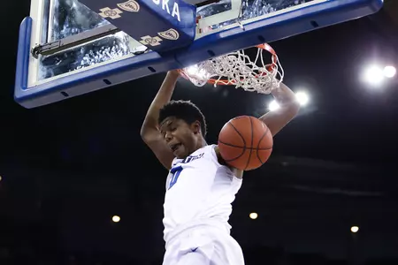 • Debuted with 12 points and eight rebounds vs. UMKC (Nov. 11), with 3 dunks.